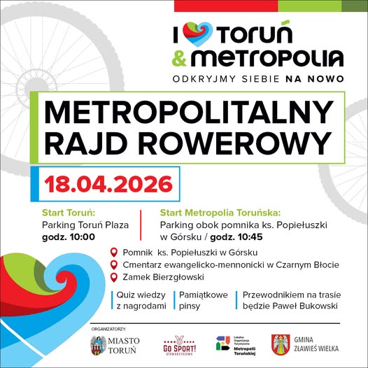 Rekreacyjny rajd rowerowy w ramach wydarzenia „I love Toruń & Metropolia”.